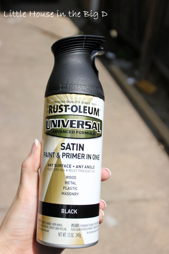 Oddly enough, Home Depot doesn't sell metallic spray paint in black (unless you want it textured, which I think is gross) so my H.D. paint buddy Mack hooked me up with a can of black in a satin finish... (and by "hooked me up", I mean he suggested I give it a try and then had me pay for it... no free rides over here)